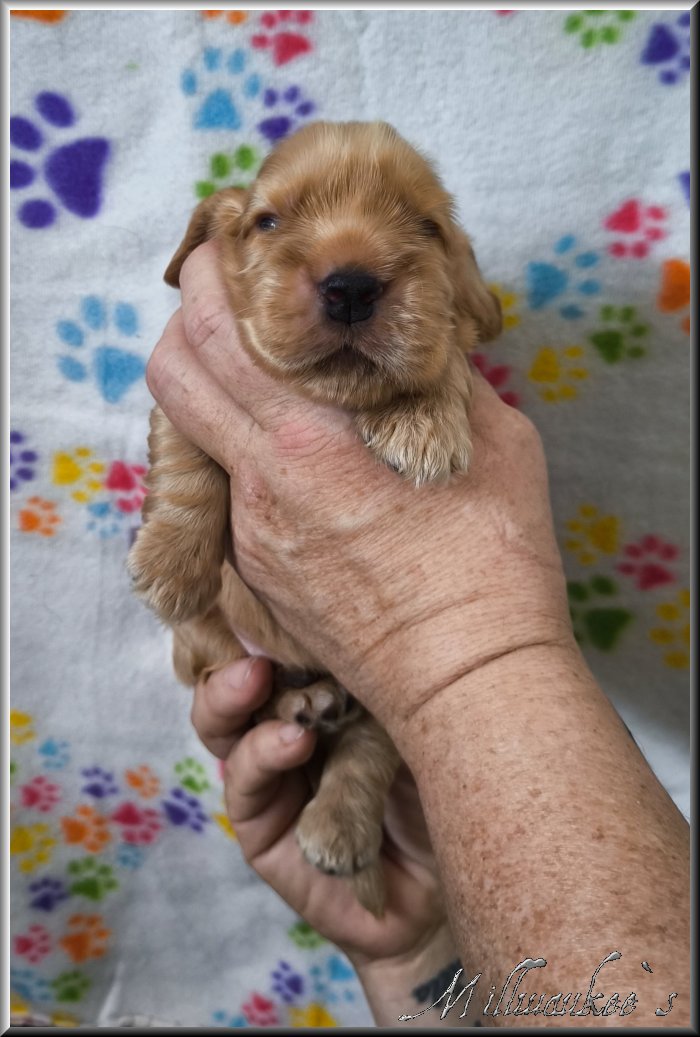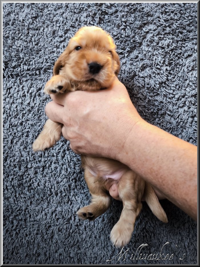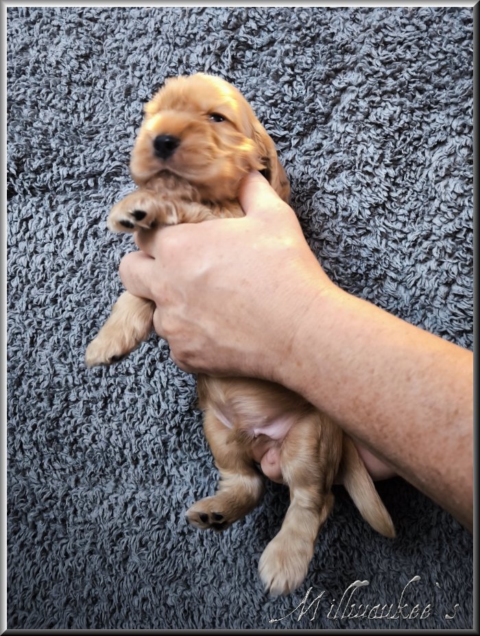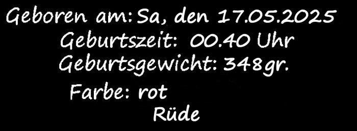 Hallo, ich bin "Millwaukee`s Fozzy Bär" ♥ Mein Rufname ist aber einfach nur Fozzy. Den Namen gaben mir Herrchen und Frauchen. Geboren wurde ich am Samstag, den 17.05.2025. Meine Fellfarbe ist rot.
