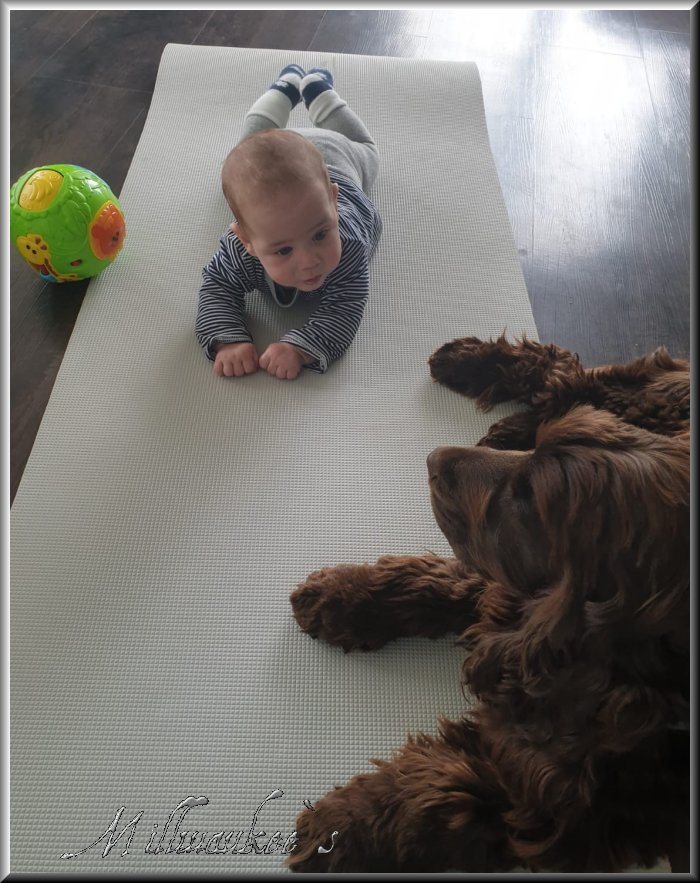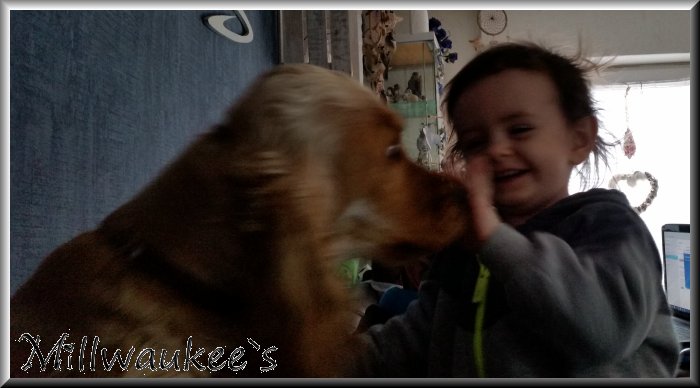 | unsere Cocker mit unserem 1. Enkelkind | |