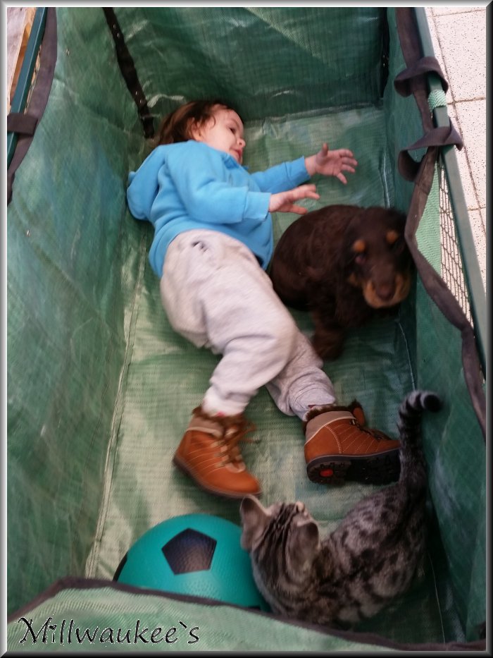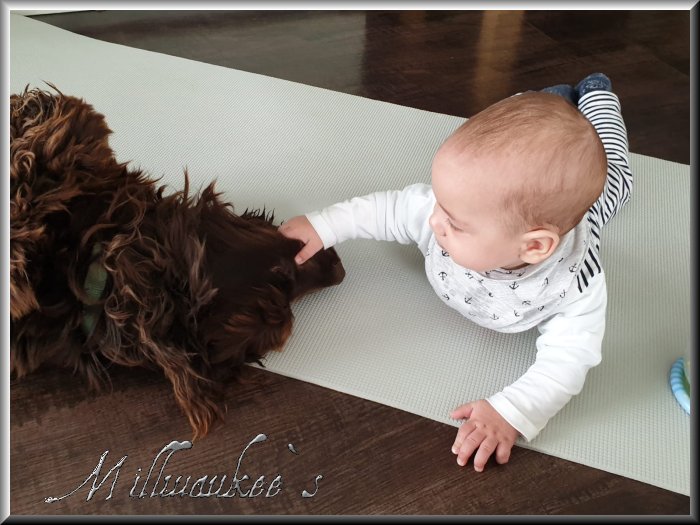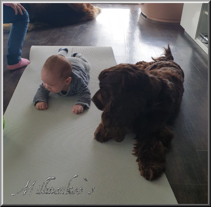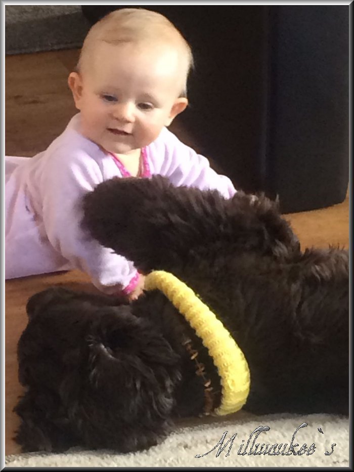 Mit Baby`s haben sie auch keinerlei Probleme wenn man aufpasst das die Kinder nicht zu grob zum Hund sind |